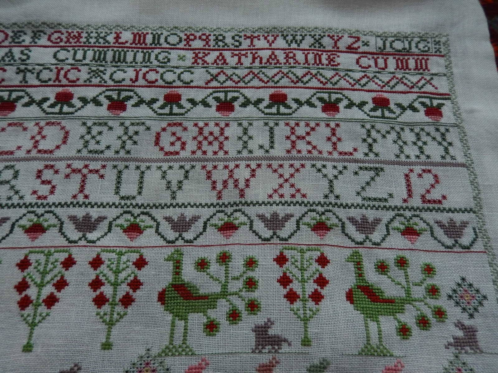 Je regrette de n'avoir pas essayé de le broder en laine, comme certaines brodeuses de notre groupe du forum Marquoirs, Samplers et cie.